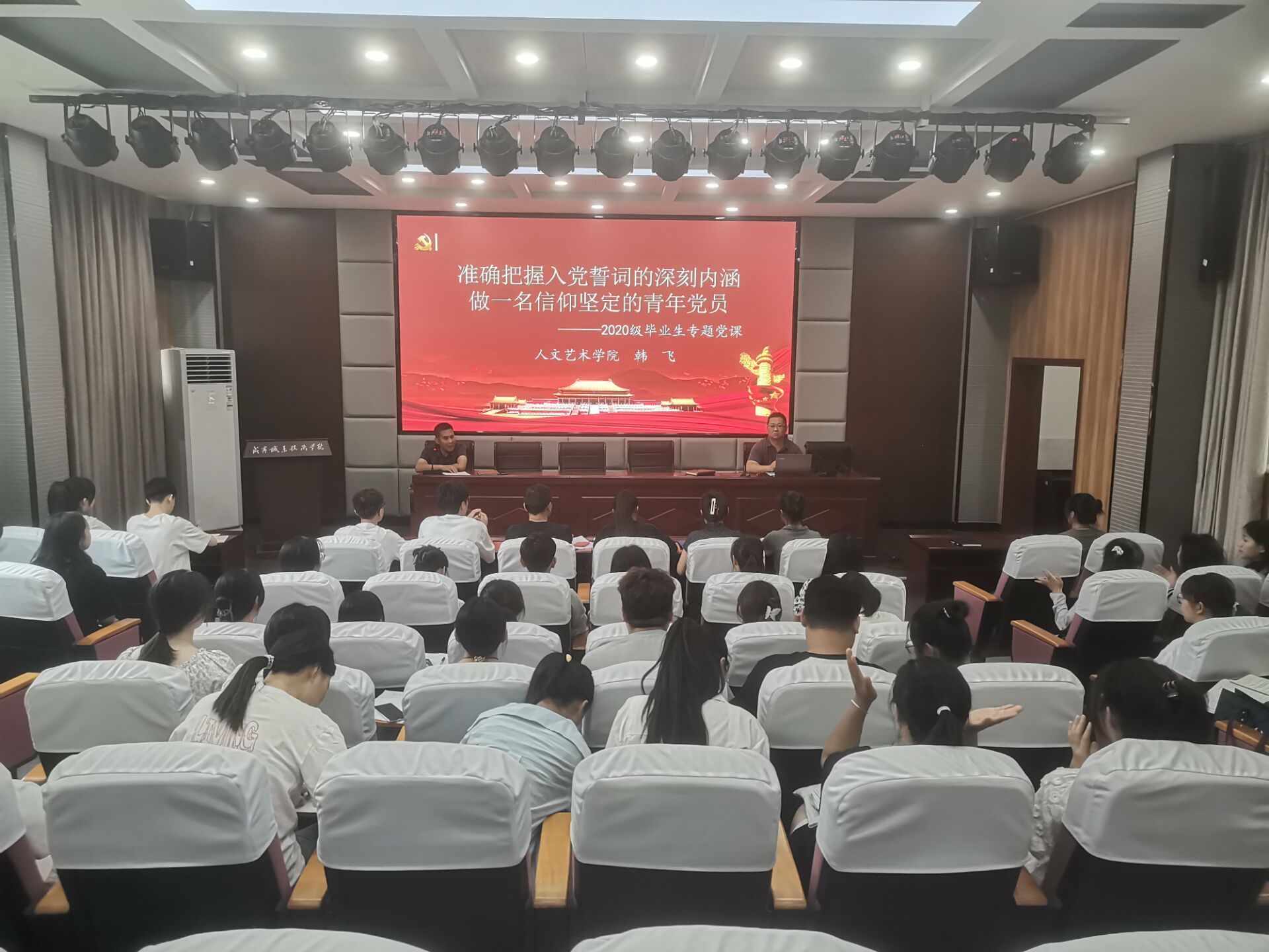 为深入学习贯彻党的二十大精神,扎实做好毕业生党员离校前的教育工作,6月15日下午,澳门十大信誉好的网站党总支书记韩飞在教育实训中心201报告厅为学院20级毕业生党员讲了一堂题为“准确把握入党誓词的深刻内涵 做一名信仰坚定的青年党员”的专题党课。