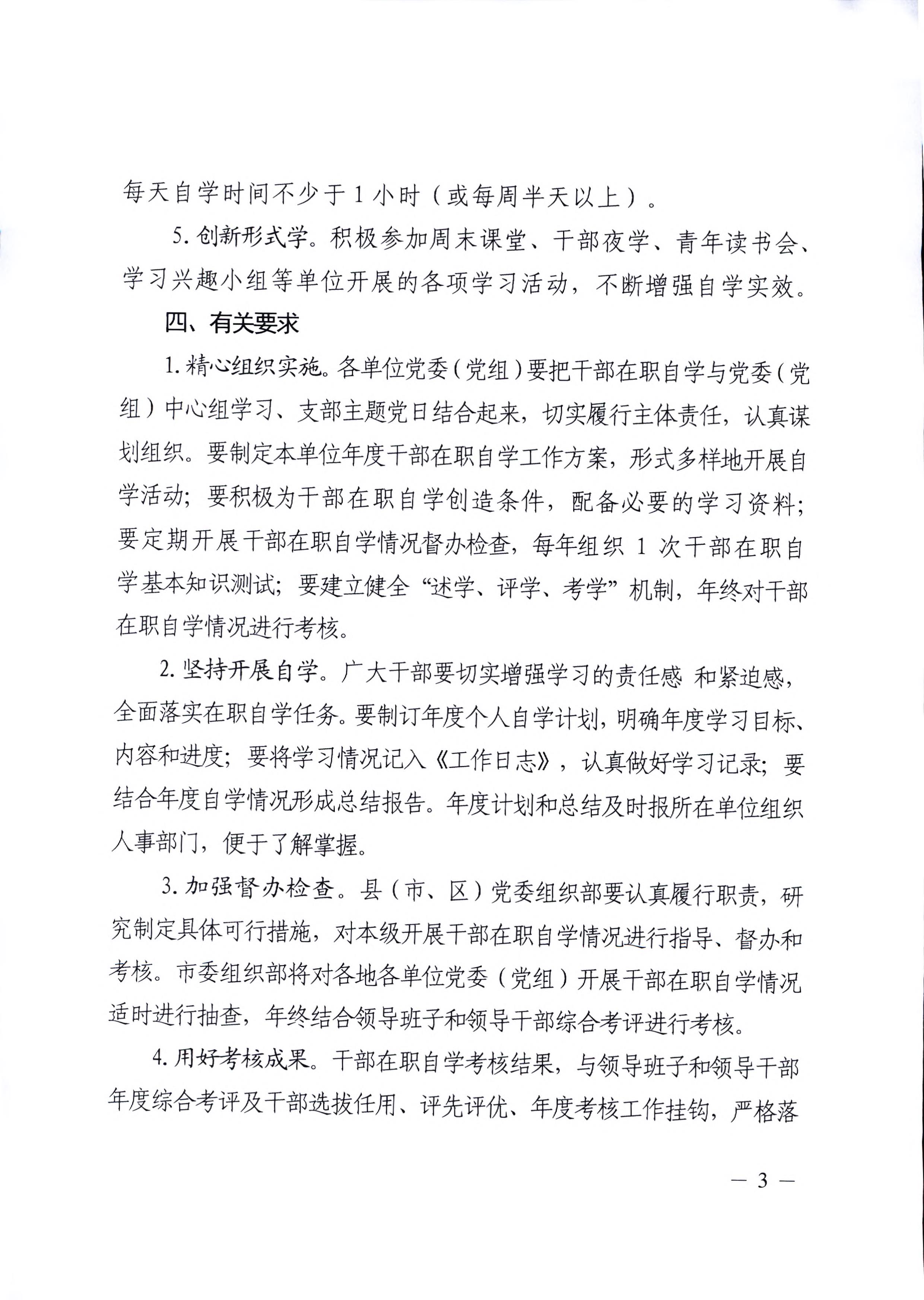 关于进一步加强干部在职自学的通知