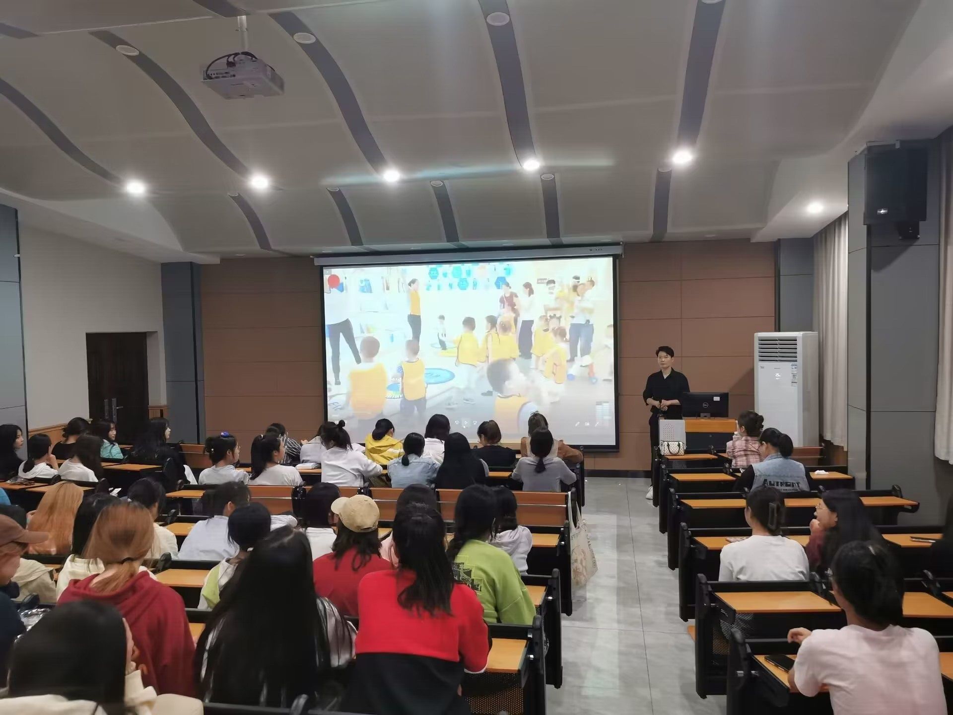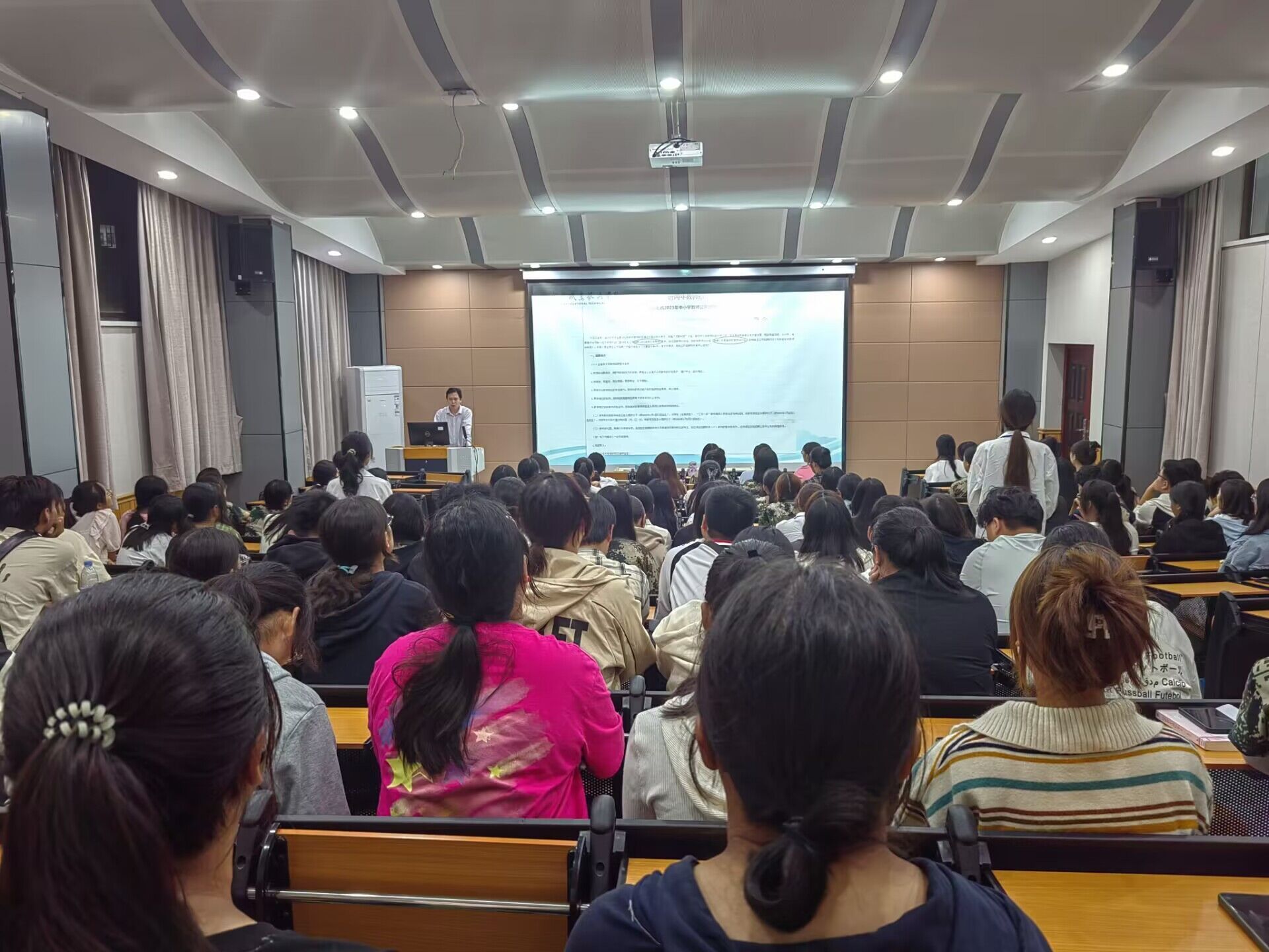 宣讲会上,各专业教研室主任从学院概况、培养目标、教学内容与课程体系、教育实训条件、学历提升途径、未来就业前景等方面向新生们介绍专业的基本情况、明确学涯要求,帮助新同学们更全面的了解专业、确定学习目标、合理规划学习生涯,不断夯实专业基础,完善健全人格,为日后的工作奠定基础。在学前教育、小学教育、小学语文教育、早期教育的专业宣讲会结束前,专业教师带领全体师生进行师范生集体宣誓,庄严的誓词、洪亮的声音,更加坚定了同学们投入教育事业的信念和决心。