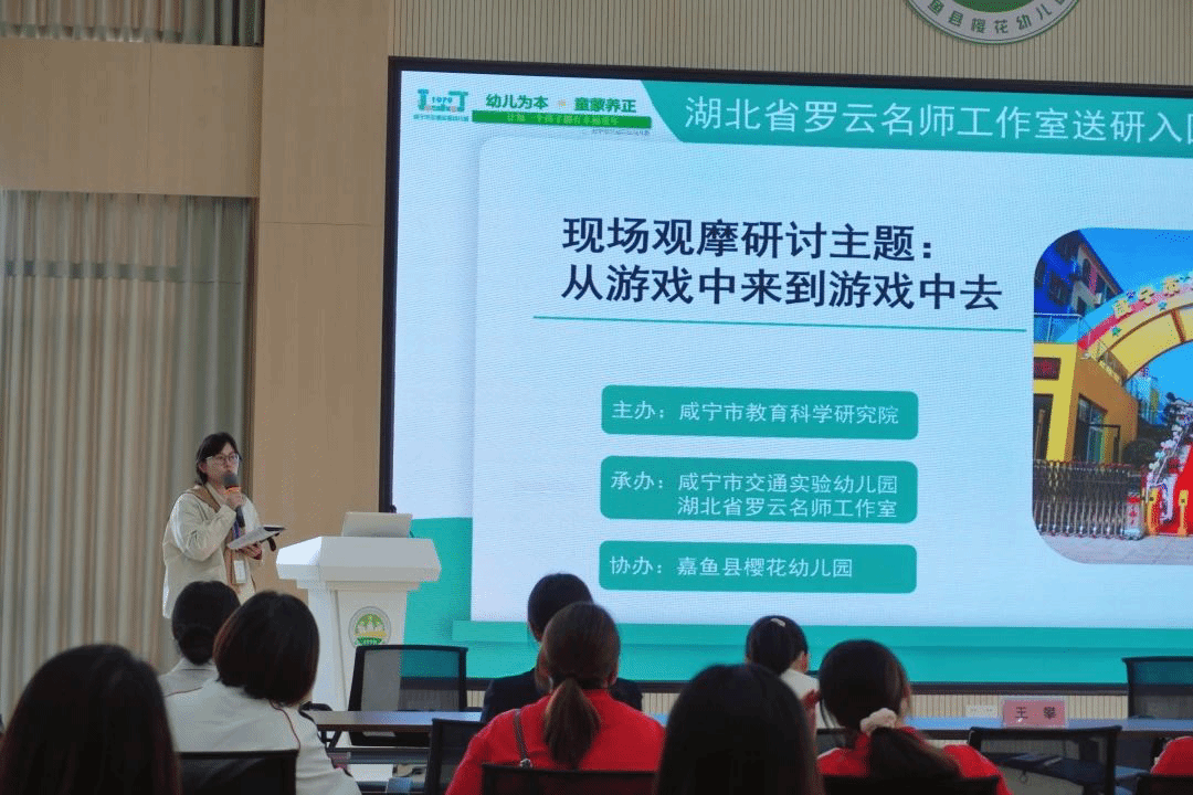 为充分发挥十大信誉官网乐享童趣游戏工作室服务地方、校园共育的示范作用,促进城乡学前教育均衡发展,10月13日,在咸宁市教科院组织下,十大信誉官网乐享童趣游戏工作室成员赵辛老师和卞莹老师应咸宁市交通实验幼儿园、湖北省罗云名师工作室的邀请,携手走进教研联盟体幼儿园——嘉鱼樱花幼儿园,开展游戏专题讲座及现场游戏观摩研讨活动。参加此次活动的除了罗云名师工作室、乐享童趣游戏工作室的成员外,还有咸宁市学前教育教研员王攀、嘉鱼县学前教育教研员李春华、湖北科技学院教育学院潘理平博士、联盟园园长及教师代表、嘉鱼县各幼儿园教师代表,参会人员近100人。