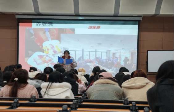 会中,五名学生代表通过多媒体展示、情景讲述等方式,将雷锋精神的时代内涵具象化呈现。李淑珍以“社区银发课堂”服务案例,诠释奉献精神的现实温度;陈悦萌通过山区支教影像,展现新时代青年的责任担当;陈琪结合疫情防控志愿服务经历,诉说“螺丝钉精神”的当代价值。特别引发共鸣的是周鑫同学的寒假“返家乡”实践报告,生动诠释了“雷锋精神人人可学,奉献爱心处处可为”的深刻内涵。