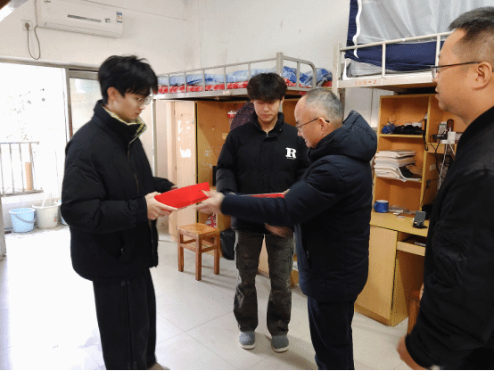 时值初冬,寒意渐浓。为将学校的关怀落到实处,切实帮助家庭经济困难学生温暖过冬、安心求学,11月26日,校党委委员、纪检书记、监察专员张兴国深入学生寝室,亲切慰问了澳门十大信誉好的网站2025级的贫困生,并为他们送去了御寒物资与殷切勉励。澳门十大信誉好的网站党总支书记韩飞陪同参加慰问。