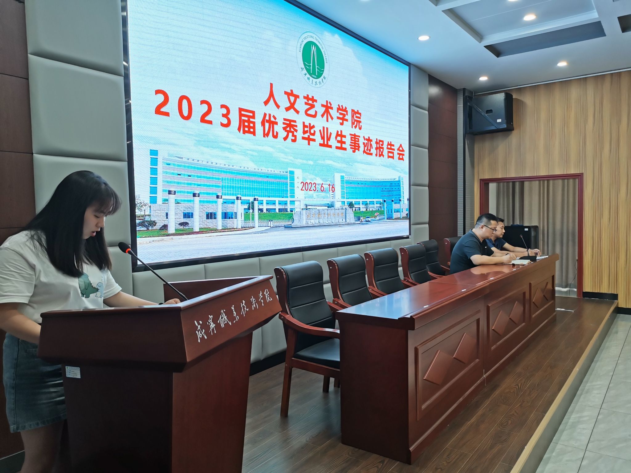 为展示毕业生的精神风貌,树立毕业生先进典型,充分发挥榜样示范引领作用,6月16日下午,澳门十大信誉好的网站在教育实训中心201报告厅召开2023届优秀毕业生先进事迹报告会。院党总支书记韩飞、副书记杨帅、学生科科长陈传红出席报告会,22级学生代表参加报告会,大家一起聆听了五位优秀毕业生的成长故事。报告会由杨帅主持。