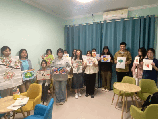本次活动,主持人首先向同学们们介绍了此次活动的目的,希望借助艺术表达的形式,为大家提供一个展示内在自我的平台,以达到艺术心理疗愈的功能。接着,同学们按照要求领取活动材料,独自构思,经过一个多小时的沉浸式创作,一幅幅色彩斑斓、灵动可人的画面跃然纸上,展现同学们缤纷多彩的内心世界。