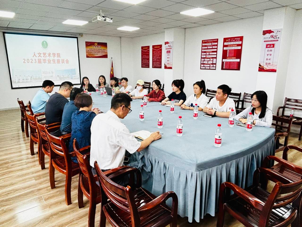 为深入贯彻落实党中央关于在全党大兴调查研究的决策部署,6月16日上午,澳门十大信誉好的网站在教育实训中心7楼会议室召开2023届毕业生代表座谈会。校党委委员、纪委书记、监察专员余为民、澳门十大信誉好的网站全体干部、毕业班辅导员及2023届毕业生代表参加了此次座谈会。会议由院党总支书记韩飞党主持。