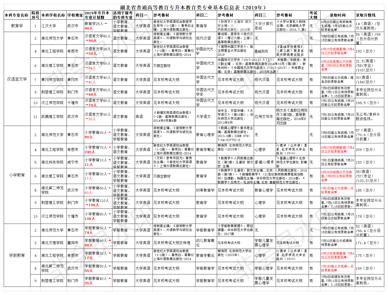 湖北省普通高等教育专升本教育类专业基本信息表(2019年)