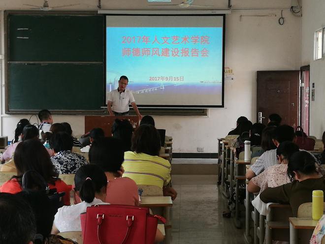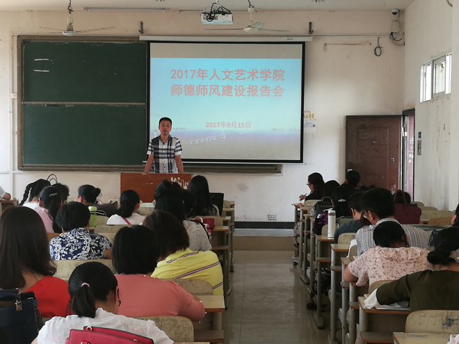 9月15日,澳门十大信誉好的网站举行2017年师德师风建设报告会,澳门十大信誉好的网站党总支书记卢臻、院长华先宙、副院长余永欢、副院长余谦、副院长陈晓云及学院全体教职员工参加了报告会,会议由卢臻书记主持。