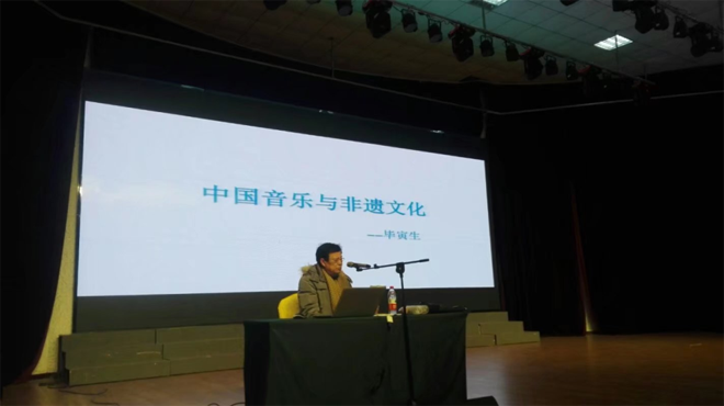 2018年1月4日晚,澳门十大信誉好的网站邀请省级非遗项目“嘉鱼呜嘟”传承人毕寅生先生来校讲座,澳门十大信誉好的网站院长华先宙、副院长陈晓云及17级学生参加了讲座。