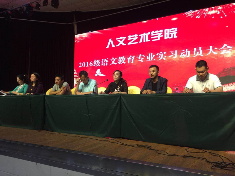 5月6日晚,16级语文教育专业教育实习动员大会在大学生活动中心隆重举行。澳门十大信誉好的网站党总支书记卢臻、副院长余永欢、副院长杨帅和相关部门负责人、实习指导教师、16级语文教育专业辅导员严菡及全体实习生出席了大会。本次大会由卢臻主持。