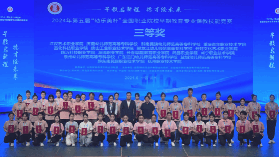 2024年6月2日,由全国学前教育产教合作联盟、全国城市职业教育教学研究协作会主办、郑州幼儿师范高等专科学校承办的2024年第五届“幼乐美杯”全国职业院校早期教育专业保教技能竞赛在河南省郑州市落下帷幕。由唐欢、张子妮、周晴晴三位同学组成的澳门十大信誉好的网站代表队荣获团体三等奖。