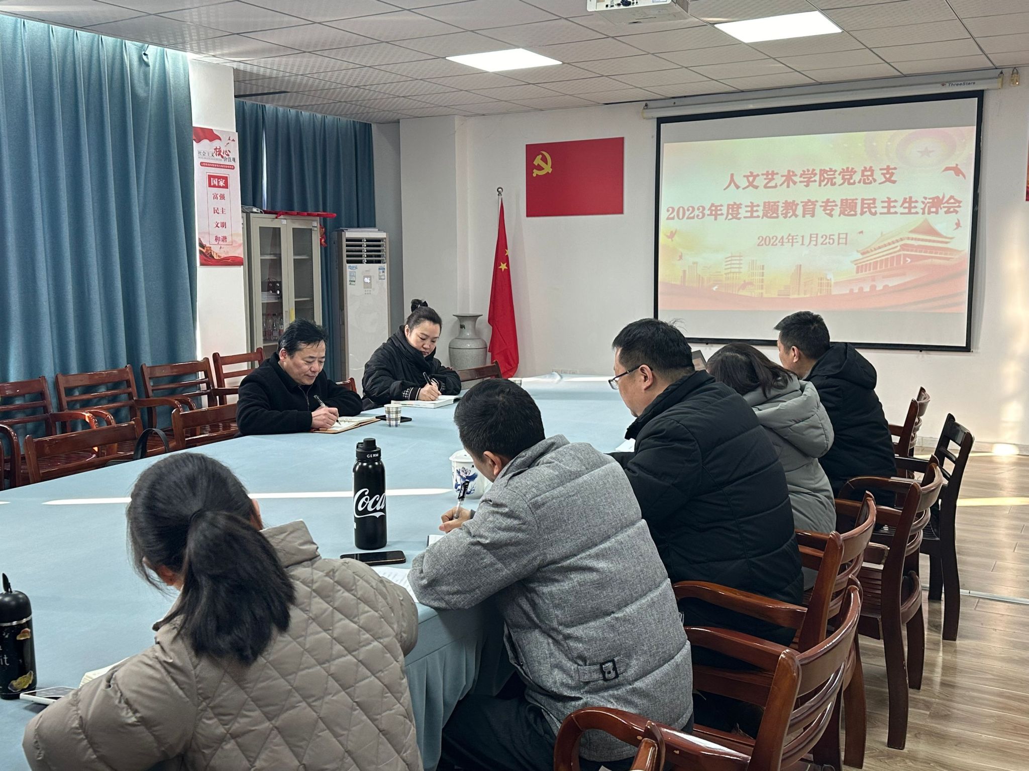首先,韩飞代表党总支对生活会前期准备情况进行说明,并代表党总支班子作对照检查、剖析存在问题的原因、提出整改措施。随后,党总支班子成员依次发言,重点围绕学习贯彻习近平新时代中国特色社会主义思想、维护党中央权威和集中统一领导、践行宗旨服务人民、求真务实狠抓落实、以身作则廉洁自律和履行全面从严治党政治责任等六个方面查摆问题,剖析问题原因,提出整改措施。班子成员结合自身实际,坚持把职责摆进去、把自己摆进去、把工作摆进去,逐一进行对照检查。实事求是、坦诚相待,开展了批评和自我批评。