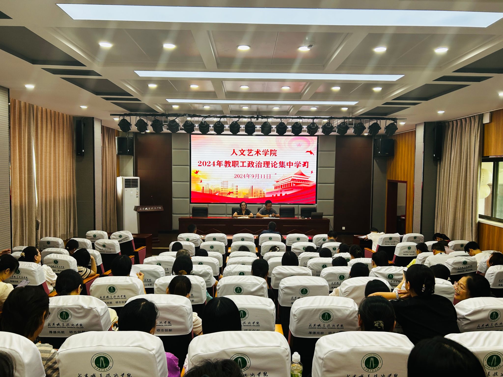 在第40个教师节到来之际,为大力弘扬教育家精神,加强学院师德师风建设,9月11日下午,澳门十大信誉好的网站在教育实训中心201召开2024年度教职工政治理论第七次集中学习大会,会议由党总支书记韩飞主持。