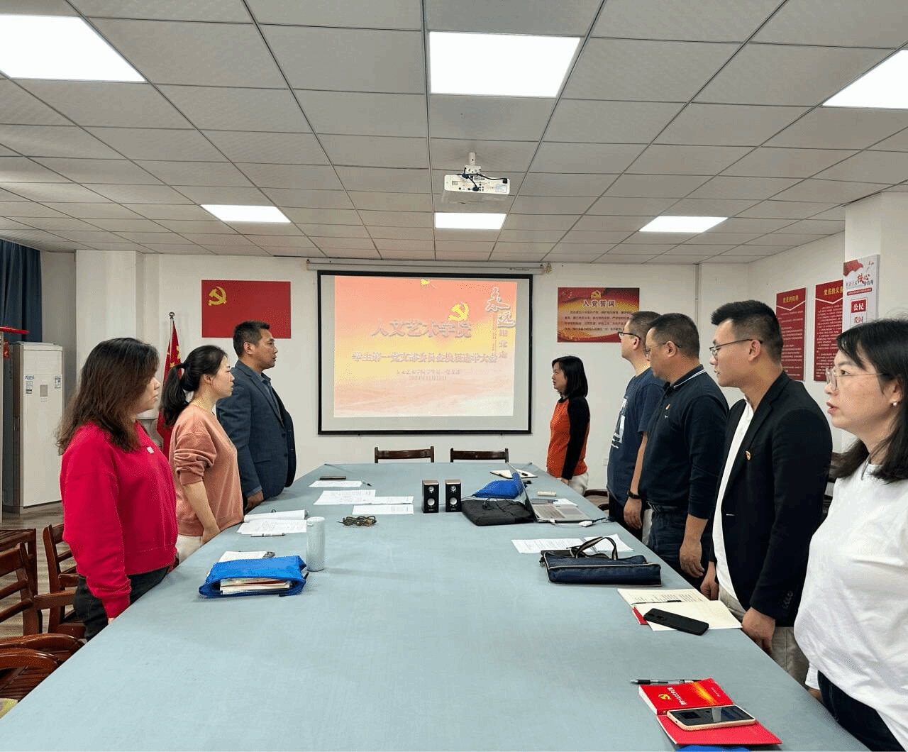 会议在庄严的国歌声中拉开序幕。首先,支部书记杨帅代表上届党支部委员会作工作报告,全面回顾了过去一年的工作成绩和不足,并对未来的工作提出了建议和展望。