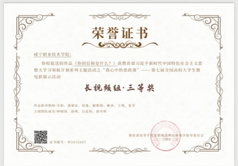 近日,由教育部高校思政课教学指导委员会主办的第七届“我心中的思政课”全国高校大学生微电影展示活动评选结果已完成评审工作,人文艺术学生徐琪、柯钰辉参赛的2个作品《弘扬优良作风,树立时代新风》、《你的信仰是什么》分别获得二等奖和三等奖。