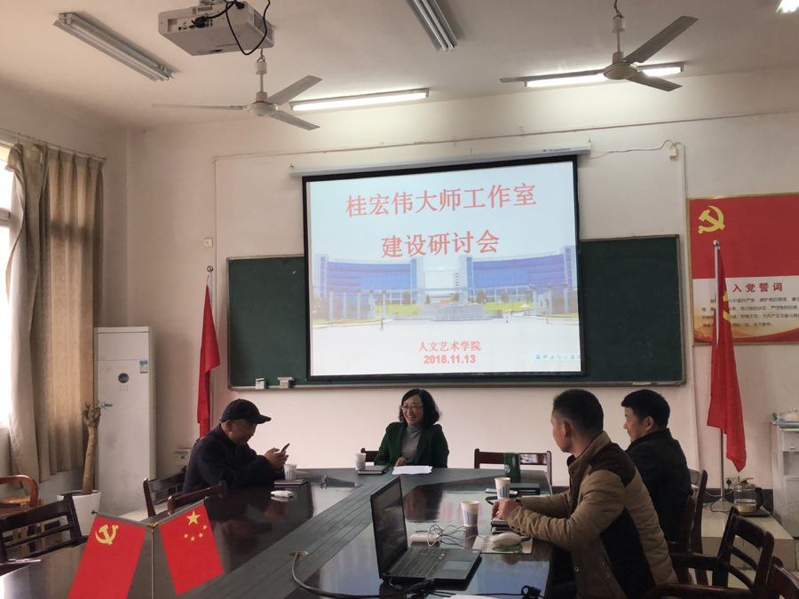 11月13日,澳门十大信誉好的网站举行“桂宏伟大师工作室”建设研讨会,著名雕塑大师桂宏伟受邀莅临交流,人文艺术党总支书记卢臻、院长余永欢、代理副院长方朝阳、美术教研室主任余娟、实训中心主任王培恒及相关专业教师参加了会议,会议由澳门十大信誉好的网站院长余永欢主持。