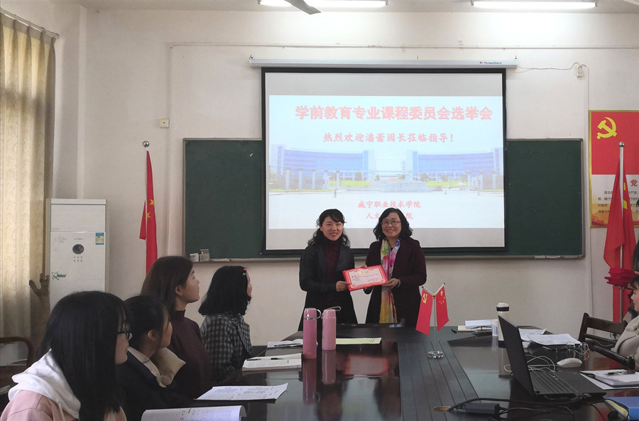 澳门十大信誉好的网站院长余永欢为学前教育专业课程委员会委员潘蕾颁发聘书