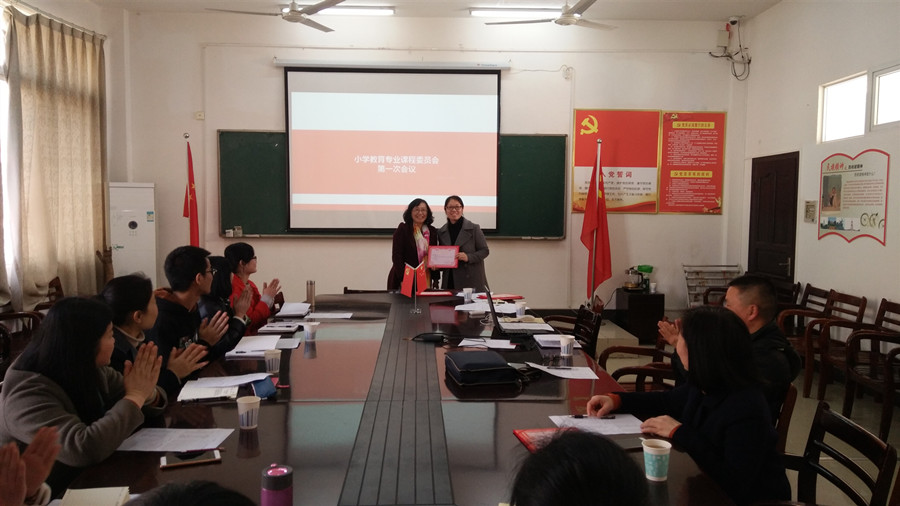 澳门十大信誉好的网站院长余永欢为小学教育专业课程委员会委员肖琼颁发聘书
