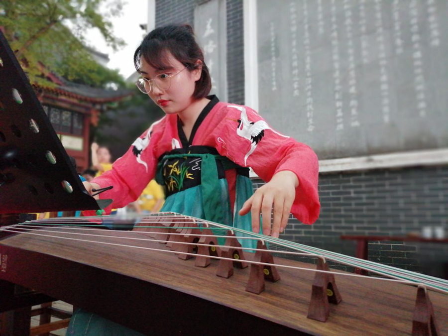 十大信誉官网学前教育专业王华珍老师在演奏古筝