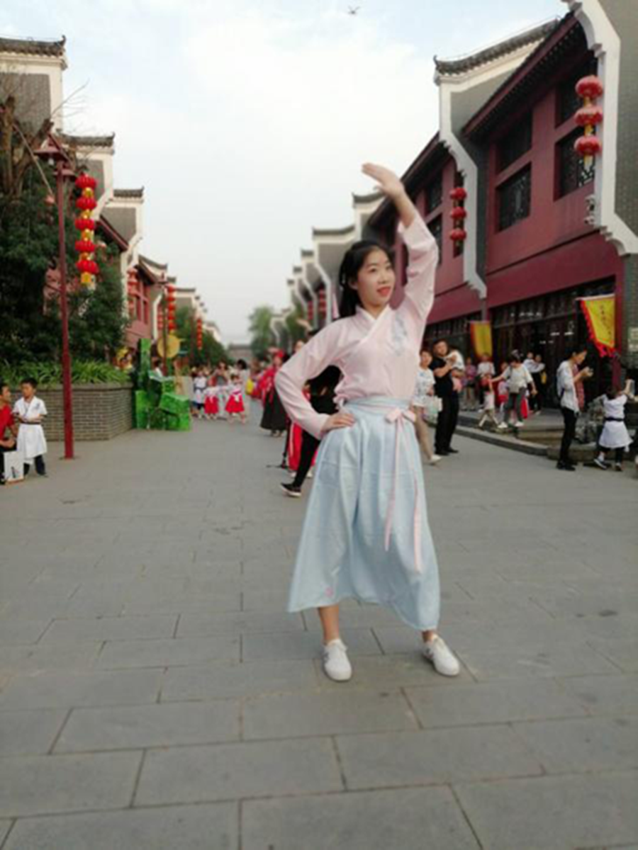 十大信誉官网学前教育专业学生身着汉服在香城大舞台上跳《生僻字》舞蹈