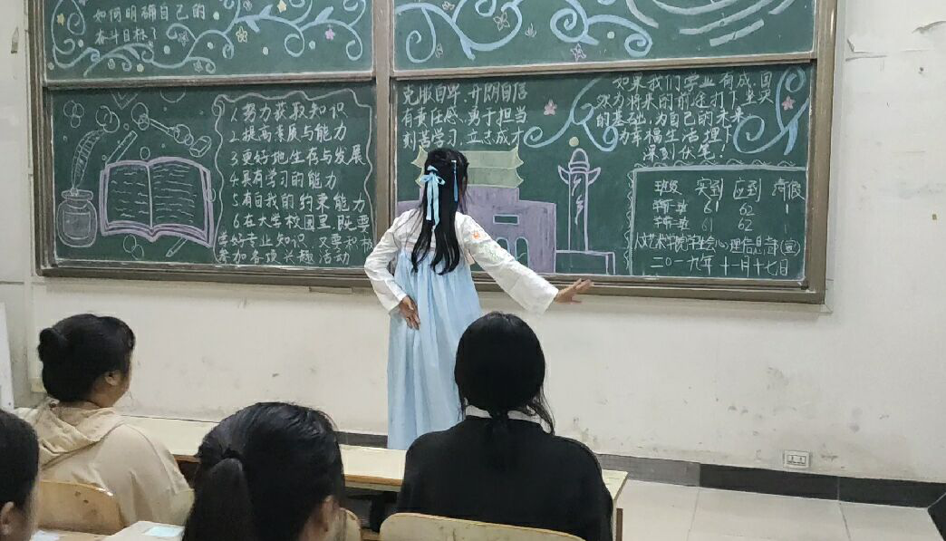 杳杳飞花 散落天涯 听一夜落花 纷飞如絮 雪衣如华尽显了祖国古典风采的舞蹈让爱国的氛围笼罩整个班级。