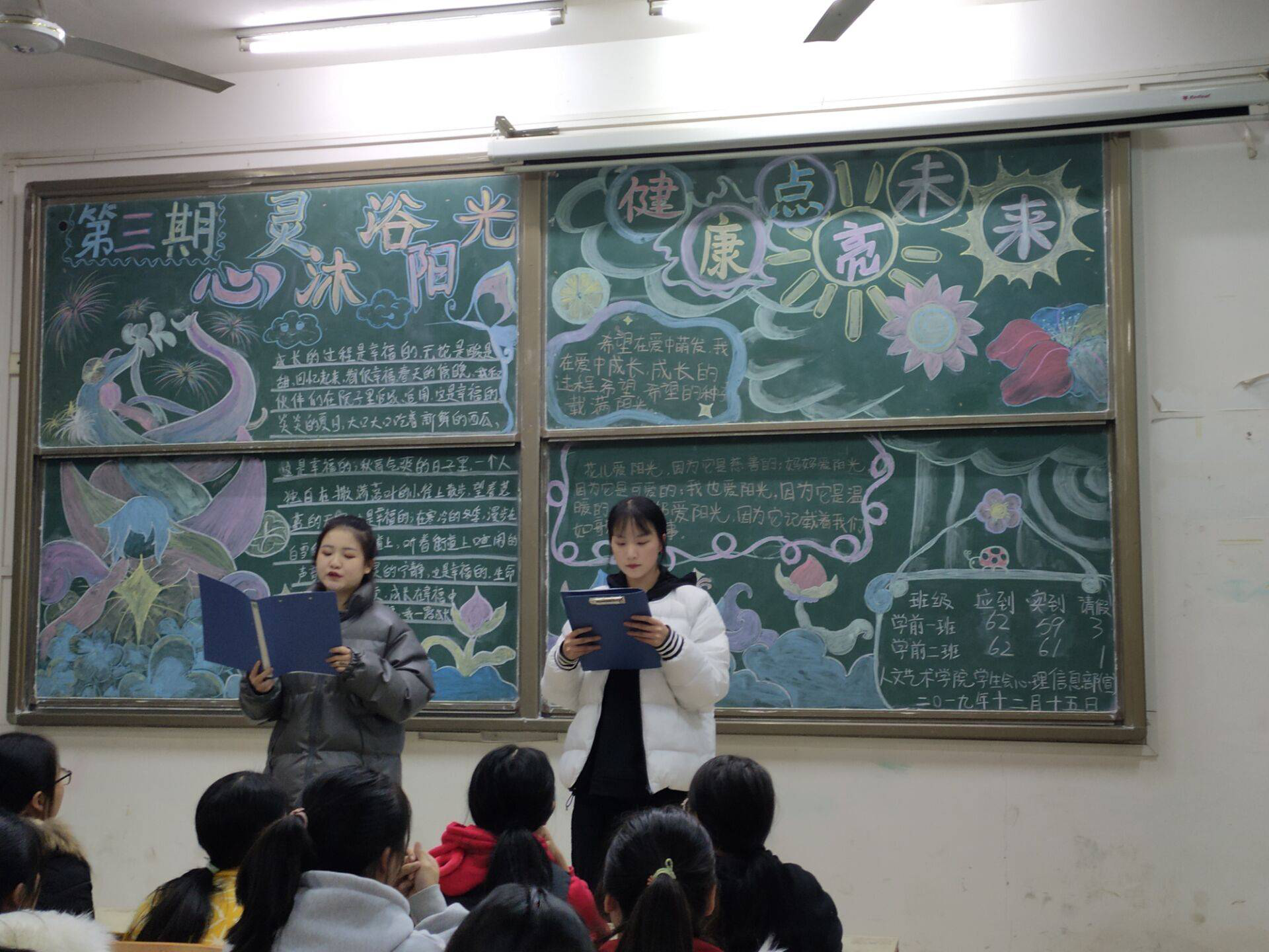 12月15日晚上,澳门十大信誉好的网站学生会心理信息部开展了以“心灵沐浴阳光 健康点亮未来”为主题的心理班会,十大信誉官网学生积极参与本次活动,踊跃配合心理信息部干事工作。通过本次的活动,让每一位同学能学会以阳光的心态去学会面对挫折,学会生活,学会与他人相处,可以去更加深入了解心理健康的知识。