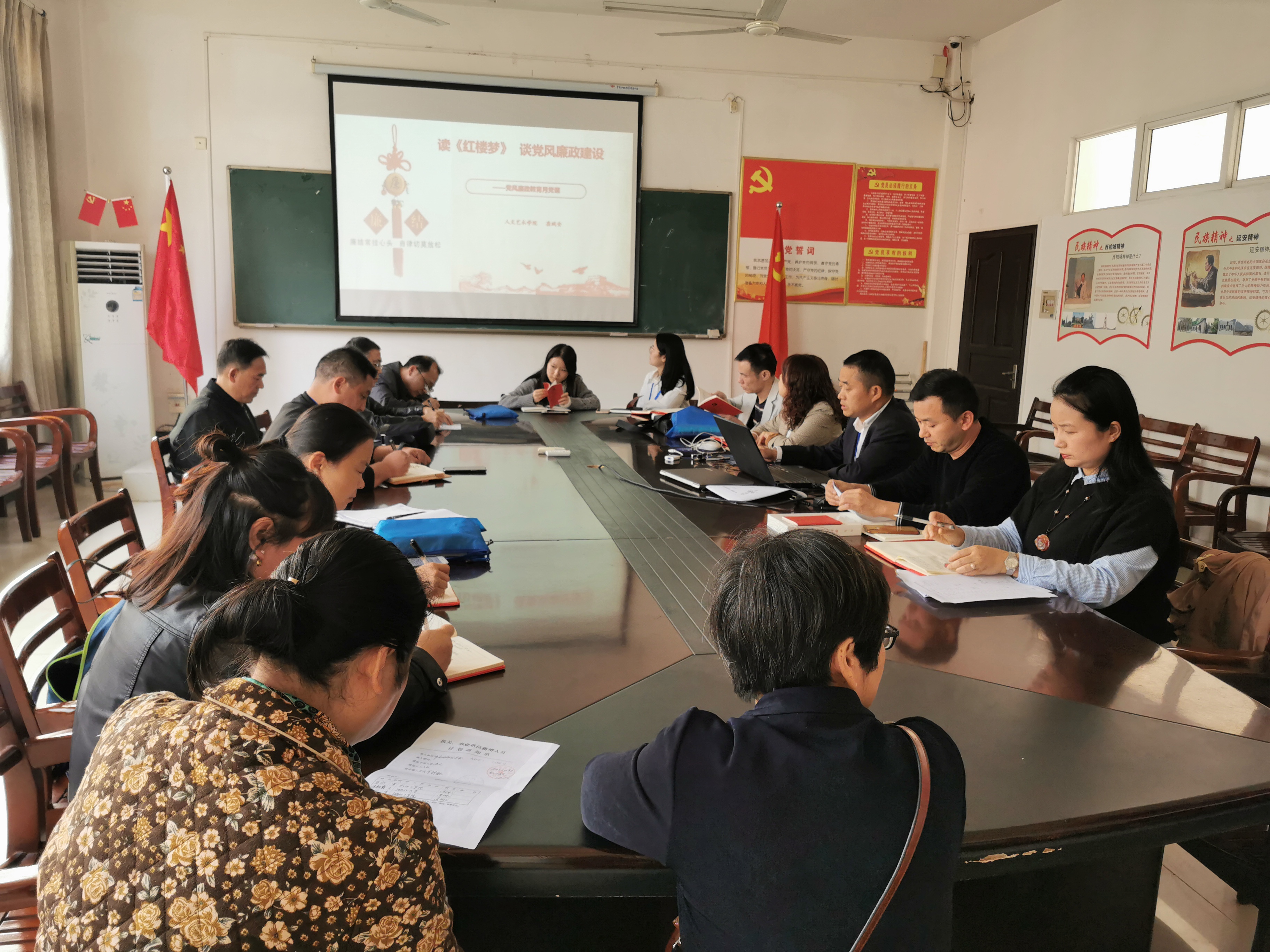 龚斌安同志通过小说《红楼梦》讲廉政党风建设,深入浅出,引经据典,实例分析,给各位党员上了一堂非常震撼的廉政党课,参会党员思想深受教育,特别是“一口井”的案例感触深刻,教育每一位党员群众守好自己的“一口井”,坚守岗位,不忘初心。