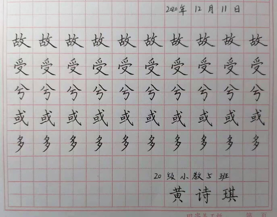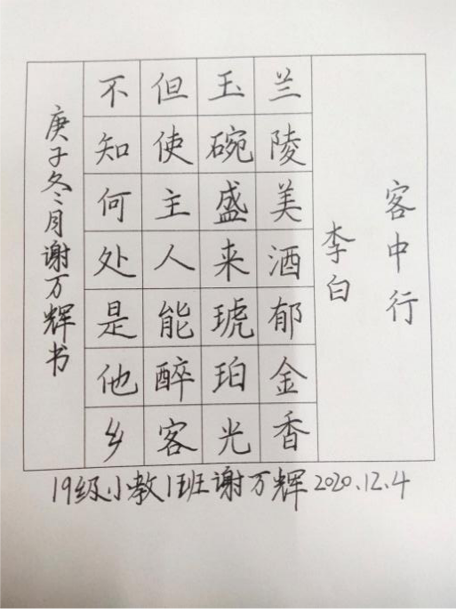 自“强训赋能计划”2020年10月开展以来,学生积极参与,大家练字的热情非常高,通过一个多月的三笔字书写强训,学生学写规范字的水平有了明显提升,笔画分明、干净利落、字形端正、行款整齐。同学们纷纷表示,开展此项活动十分有意义,收获也很大。三笔字技能导师李芳芳老师表示,相信在老师的耐心辅导和同学们的刻苦训练下,学生们都能较为全面地提高汉字的书写能力,以达到能写一手美观、流畅、实用的“三笔字”,为将来从事教师职业打下良好的基础!