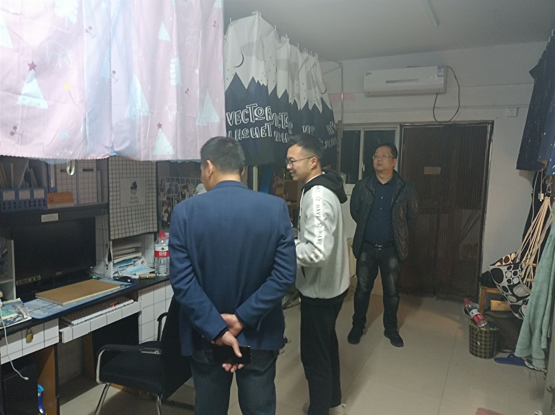 此次检查,主要针对18级、19级、20级部分男生寝室,重点关注了寝室卫生、寝室安全以及寝室文化建设三个方面。检查过程中,各寝室学生积极配合,大部分寝室干净整洁,宿舍内物件摆放整齐。在寝室安全方面,学院领导再次跟同学们强调,宿舍安全无小事,严令禁止学生在寝室抽烟、使用大功率电器等违规行为。学院领导对文化氛围浓烈的寝室给予表扬,部分寝室用海报、窗帘、贴纸等小物件装饰宿舍,为宿舍增添了温馨感。同时,学院领导也对学生的学习情况以及近期的生活状态予以关心。
