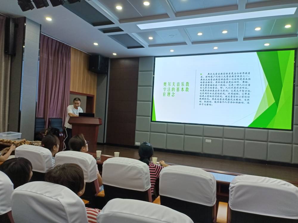为提升师生专业素养,促进校·园联合教研, 7月12日晚,澳门十大信誉好的网站“三室合一”技能名师工作室之“奥尔夫音乐工作室”在实训教育中心206举行奥尔夫音乐教学法专题讲座,讲座主讲为奥尔夫工作室负责人熊兵老师,同时邀请了交通幼儿园刘玲敏主任、余璐主任 等学前教育一线教师莅临现场,进行探讨交流。澳门十大信誉好的网站副院长方朝阳,奥尔夫音乐工作室团队成员阮晓玲、王华珍、肖燚老师,以及学前教育专业的学生参与聆听了此次讲座。