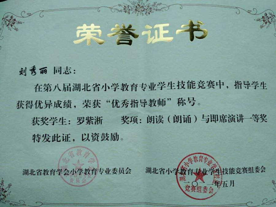 罗紫淅同学在第八届湖北省小教联盟学生技能竞赛中荣获“朗读(朗诵)与即席演讲”一等奖