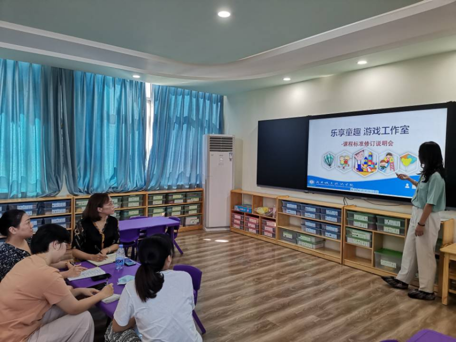 为进一步提升团队教师研读课标、深化教改、研磨课堂的能力,9月10日上午,澳门十大信誉好的网站游戏工作室全体成员在教育实训中心游戏实训室参加了《幼儿游戏与指导课程标准》修订说明会。此次活动特别邀请到了澳门十大信誉好的网站院长余永欢和学前教育专业教研室主任谭璇老师。