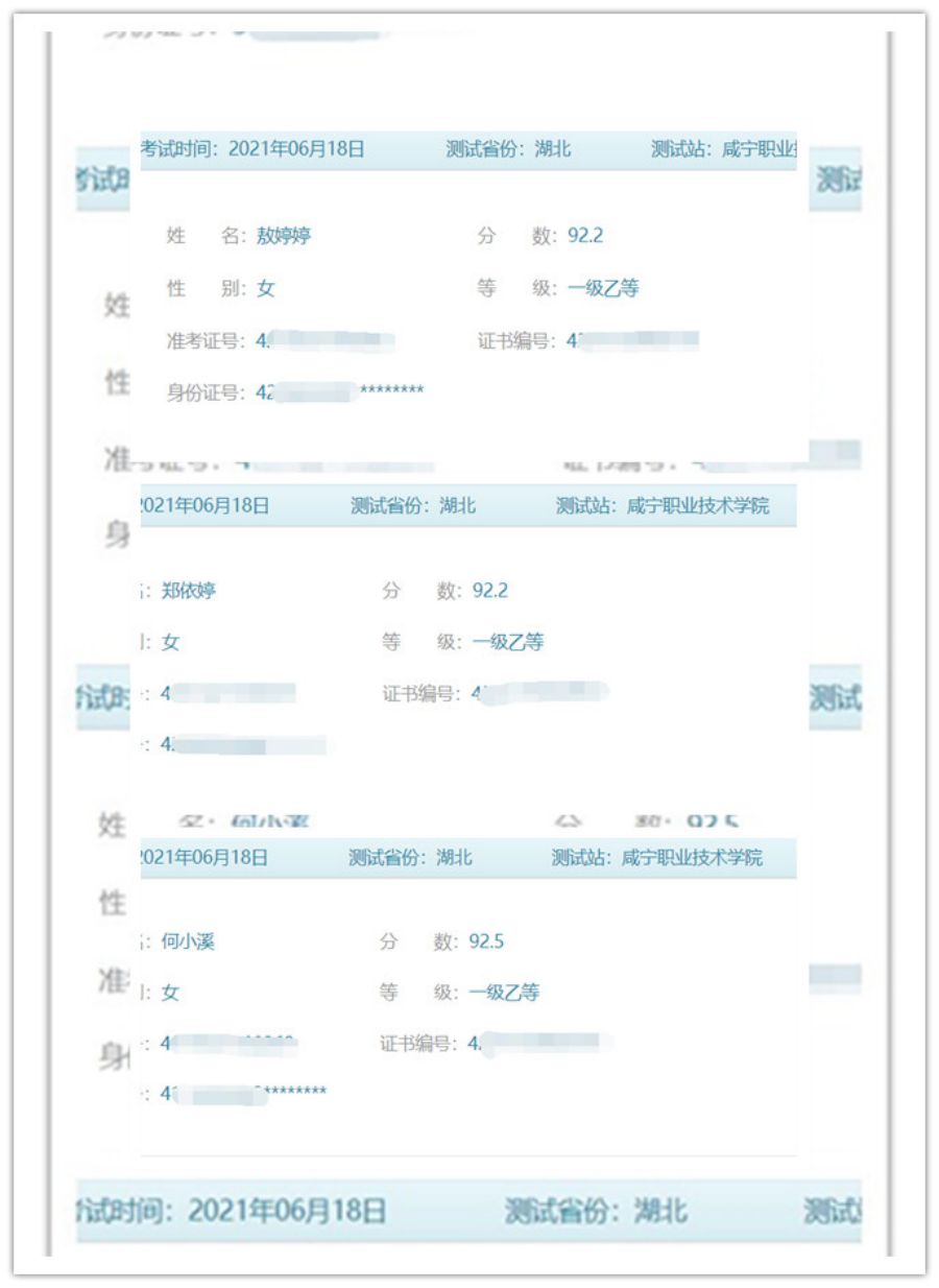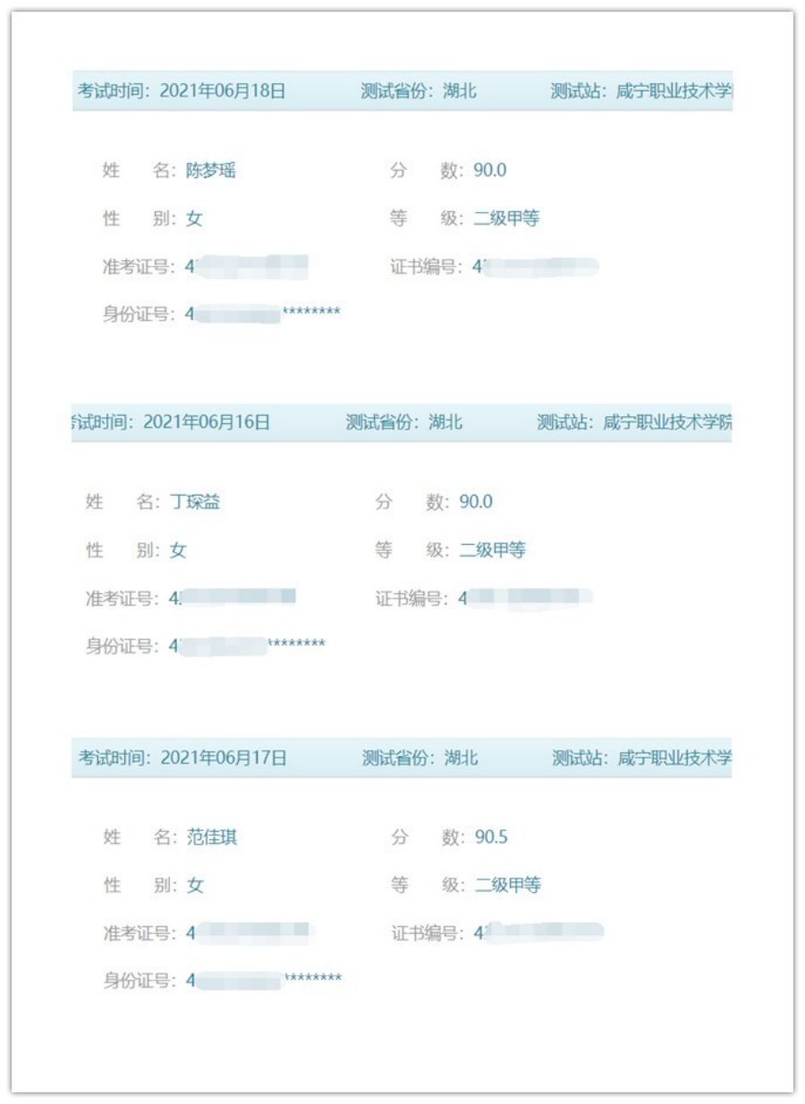 2021年6月测试中获得二级甲等学生(部分)