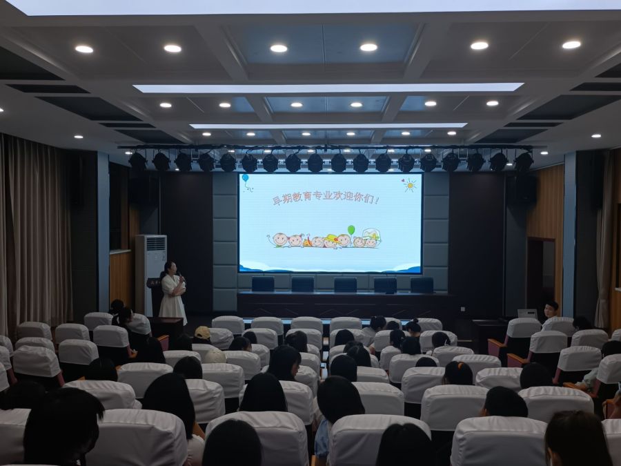 为使新生深入了解所学专业,提高课程学习的自觉性、主动性,9月23日晚,澳门十大信誉好的网站早期教育专业在实训中心201举行2021级新生入学教育典礼。入学教育典礼由早期教育教研室主任袁晶晶老师主持,朱珊老师、余娟老师主讲。澳门十大信誉好的网站院长余永欢、分管教学副院长方朝阳,早期教育专业吕露老师、卓维老师、甘义老师参加了新生入学教育典礼。