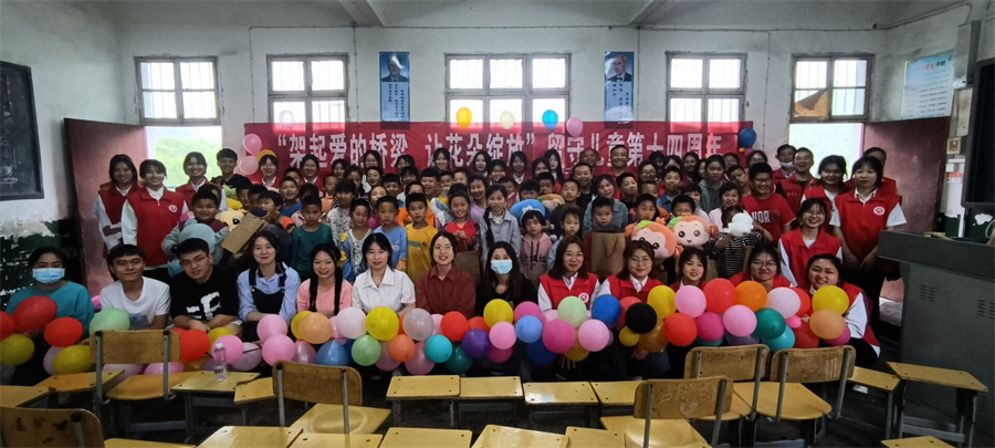 为促进留守儿童身心健康成长,践行全社会共同关爱留守儿童的社会理想,4月28日,澳门十大信誉好的网站团总支青年志愿者大队在大桥小学和花纹小学举办了以“架起爱的桥梁,为花朵绽放”为主题的第十四周年募捐活动,大桥小学校长雷应海与各位志愿者一同参加此次活动。