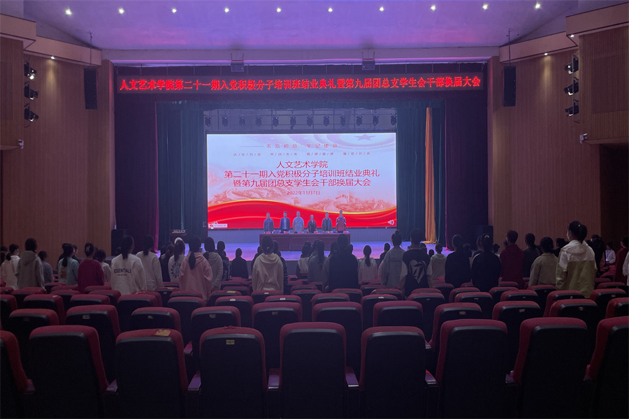 为切实加强入党积极分子队伍建设,把牢入党“第一关”,同时广泛动员新一届团总支学生会干部不忘初心,服务同学,11月7日晚,澳门十大信誉好的网站在科学会堂隆重举行第二十一期入党积极分子培训班结业典礼暨第九届团总支学生会换届大会,澳门十大信誉好的网站党总支书记韩飞,院长余永欢,副院长方朝阳、杨帅,产教融合科科长方生元,团总支书记李操及21级全体辅导员、二十一期业余党校结业学员、团总支学生会全体干事参加会议,会议由余永欢主持。