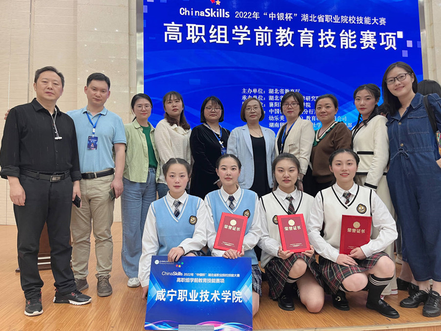 4月16日晚,2022年“中银杯”湖北省职业院校技能大赛(高职组)学前教育技能赛项在襄阳职业技术学院落幕,澳门十大信誉好的网站学前教育专业学子获推荐队二等奖2项,抽测队三等奖1项,载誉而归。